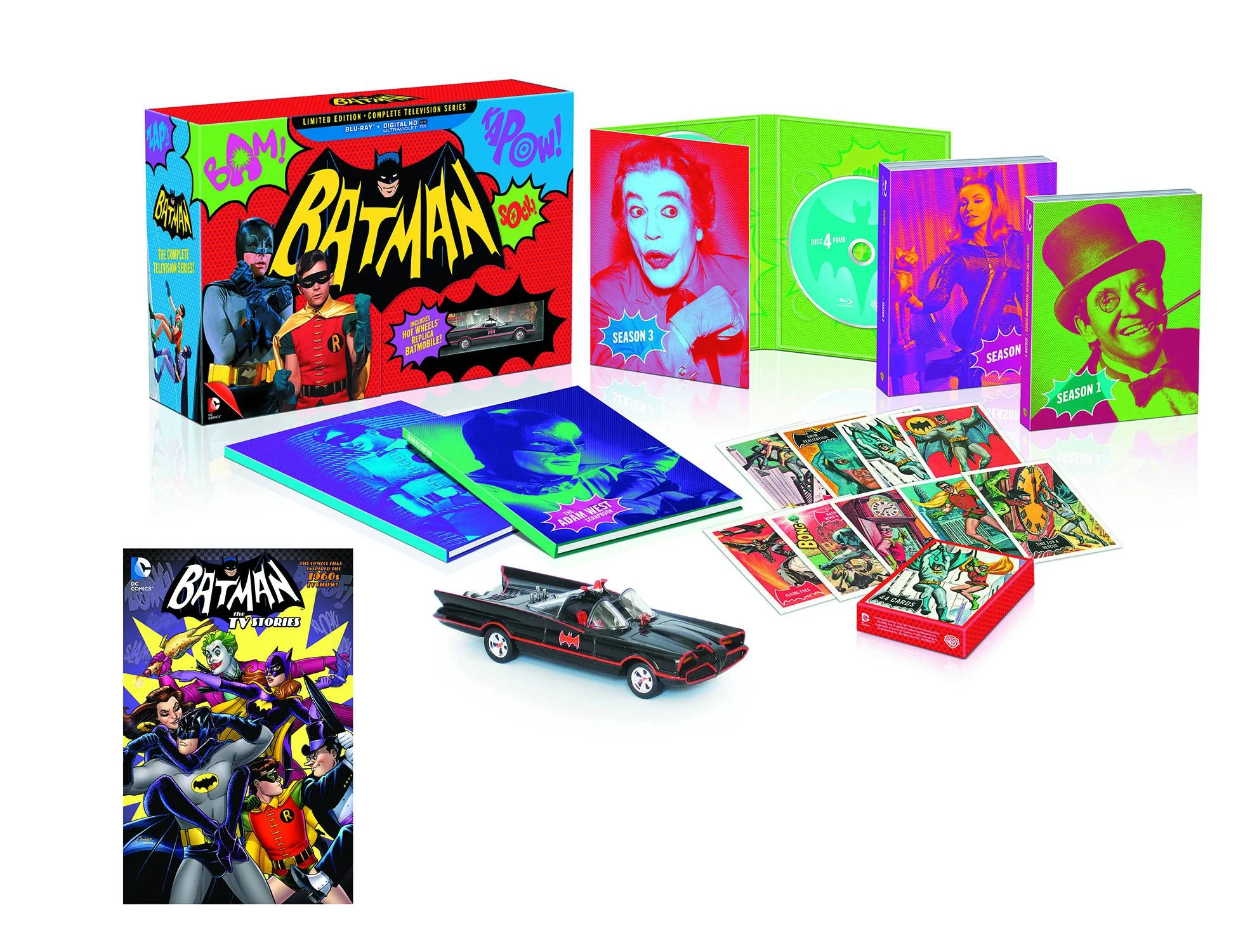 Batman TV series on BluRay, with all the extras PLUS an exclusive HardCover collection of several Golden Age stories used as the basis for many 1st Season episodes.